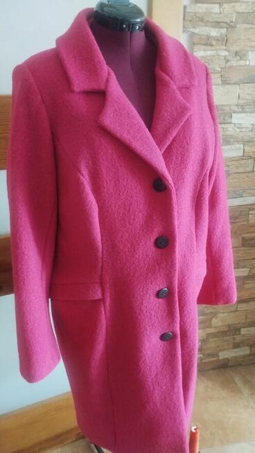 Piękny płaszcz z miękkiej bukli,lekko ocieplony zapinany na guziki Stan idealny Wymiary Biust 122 Pas 114 Biodra ...